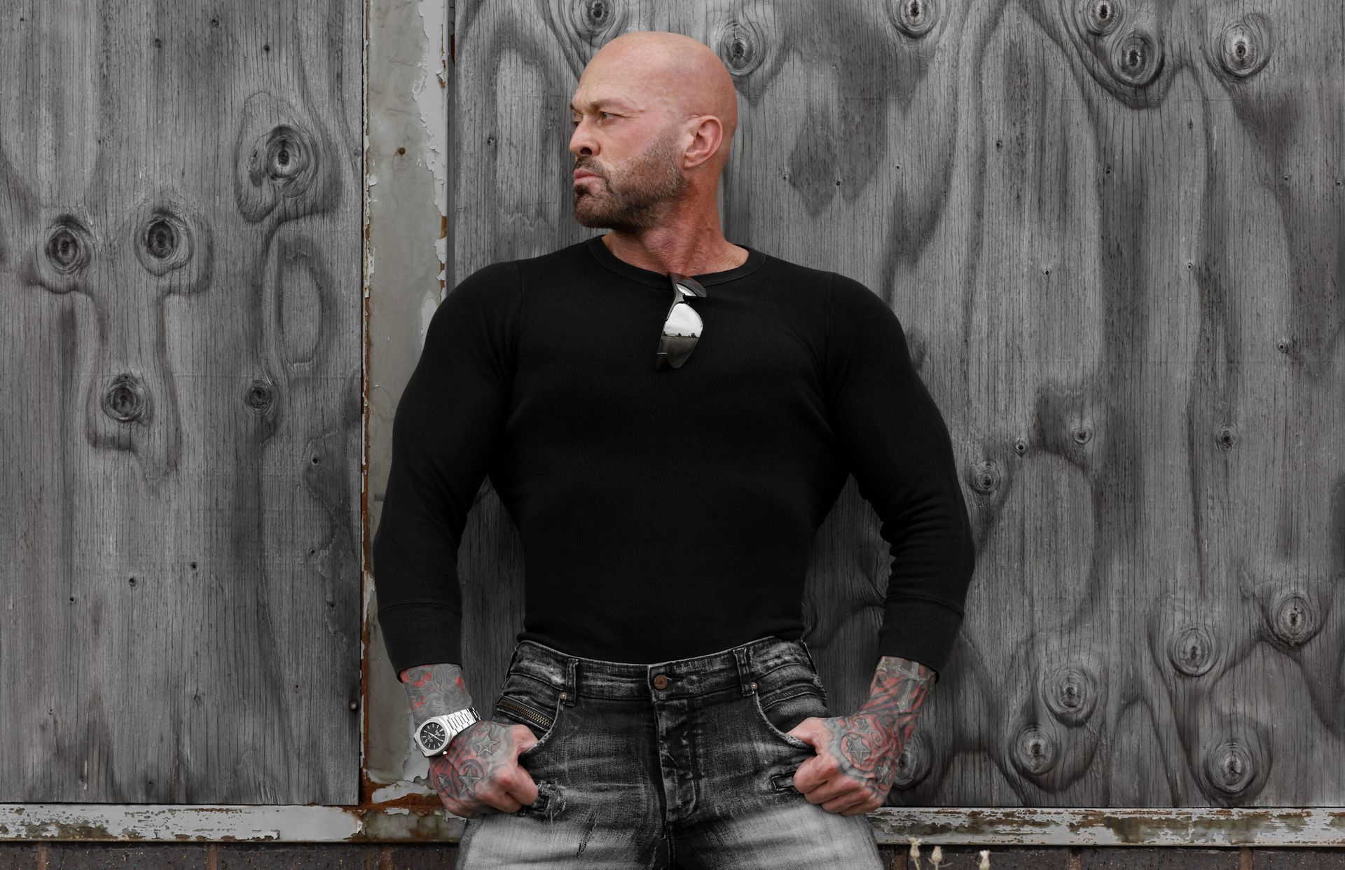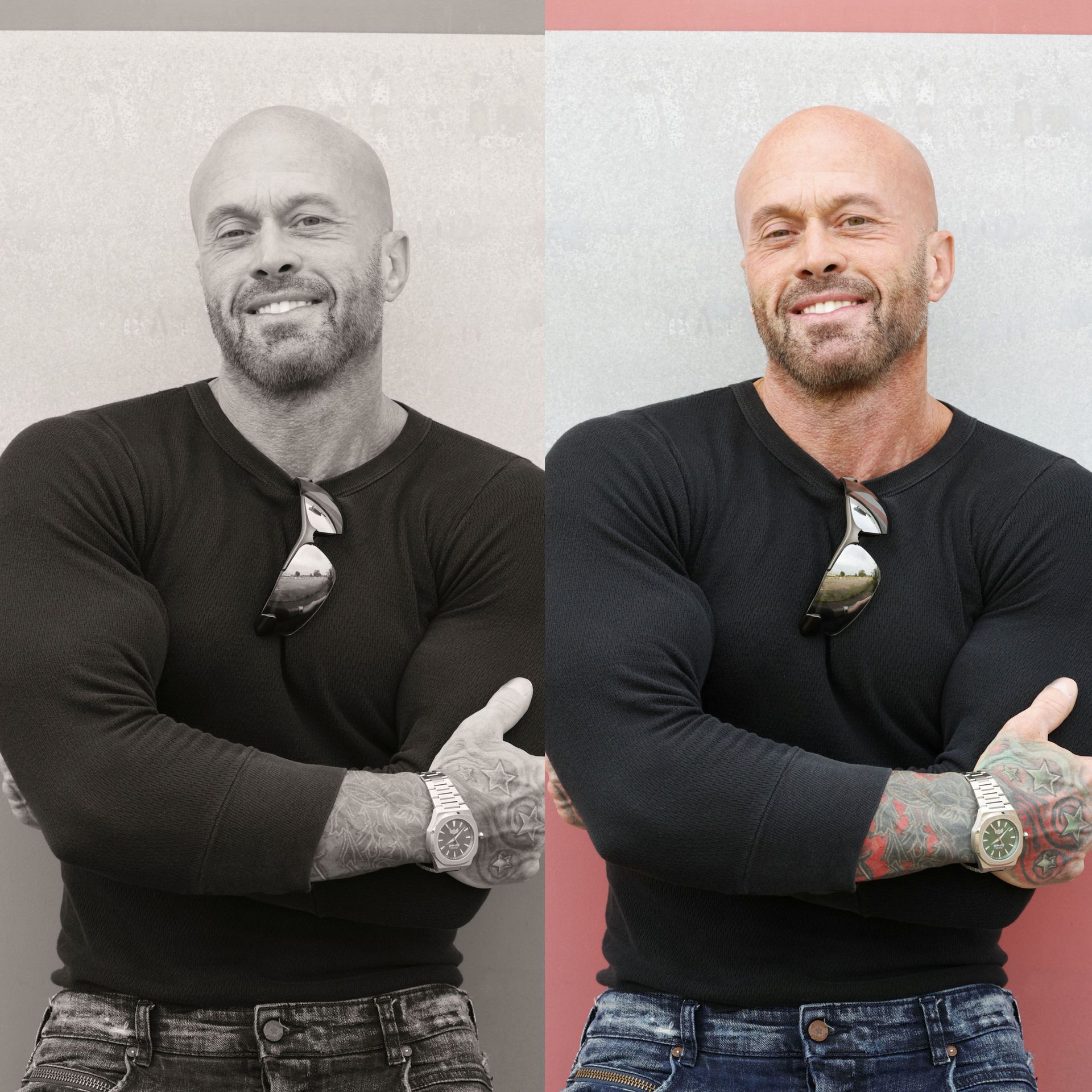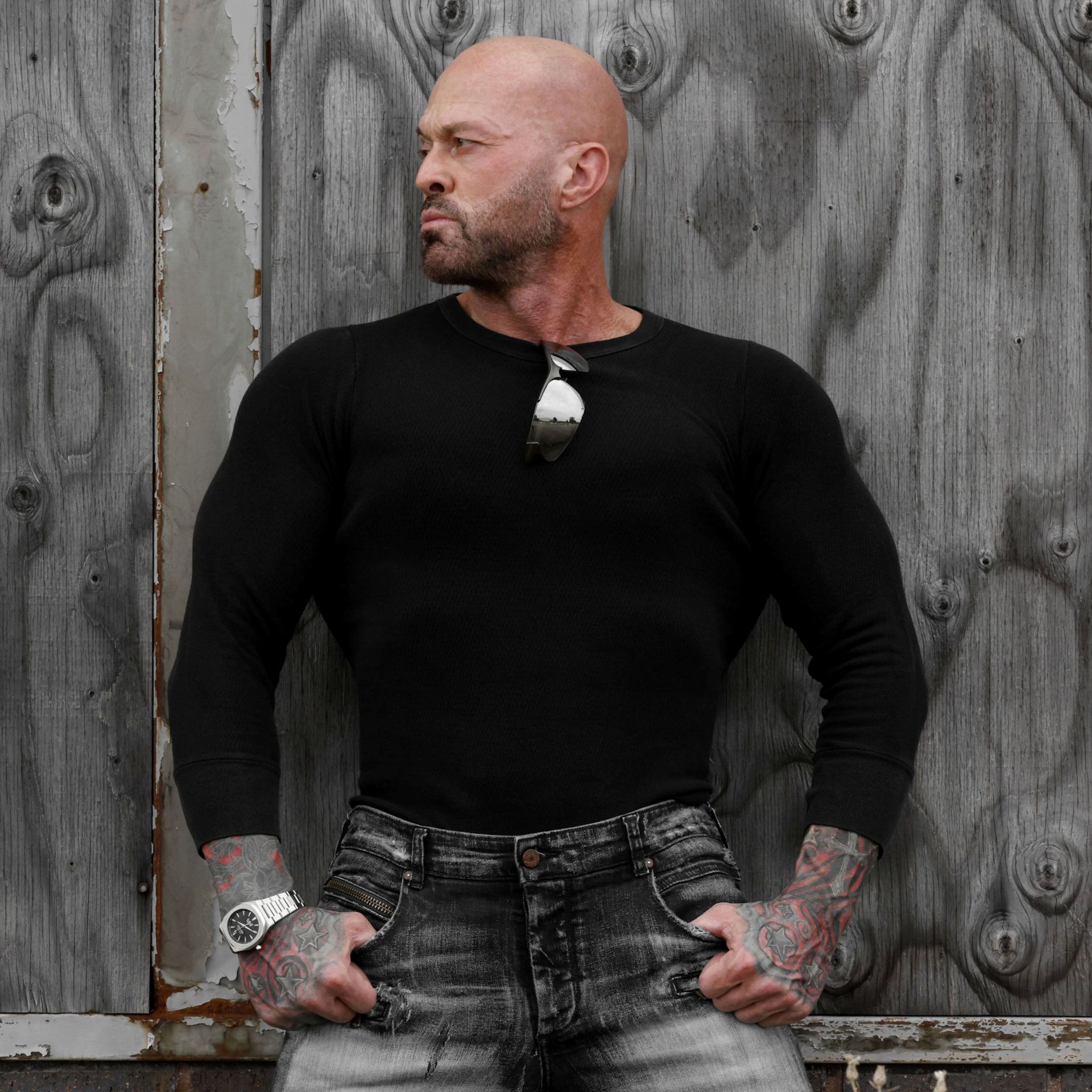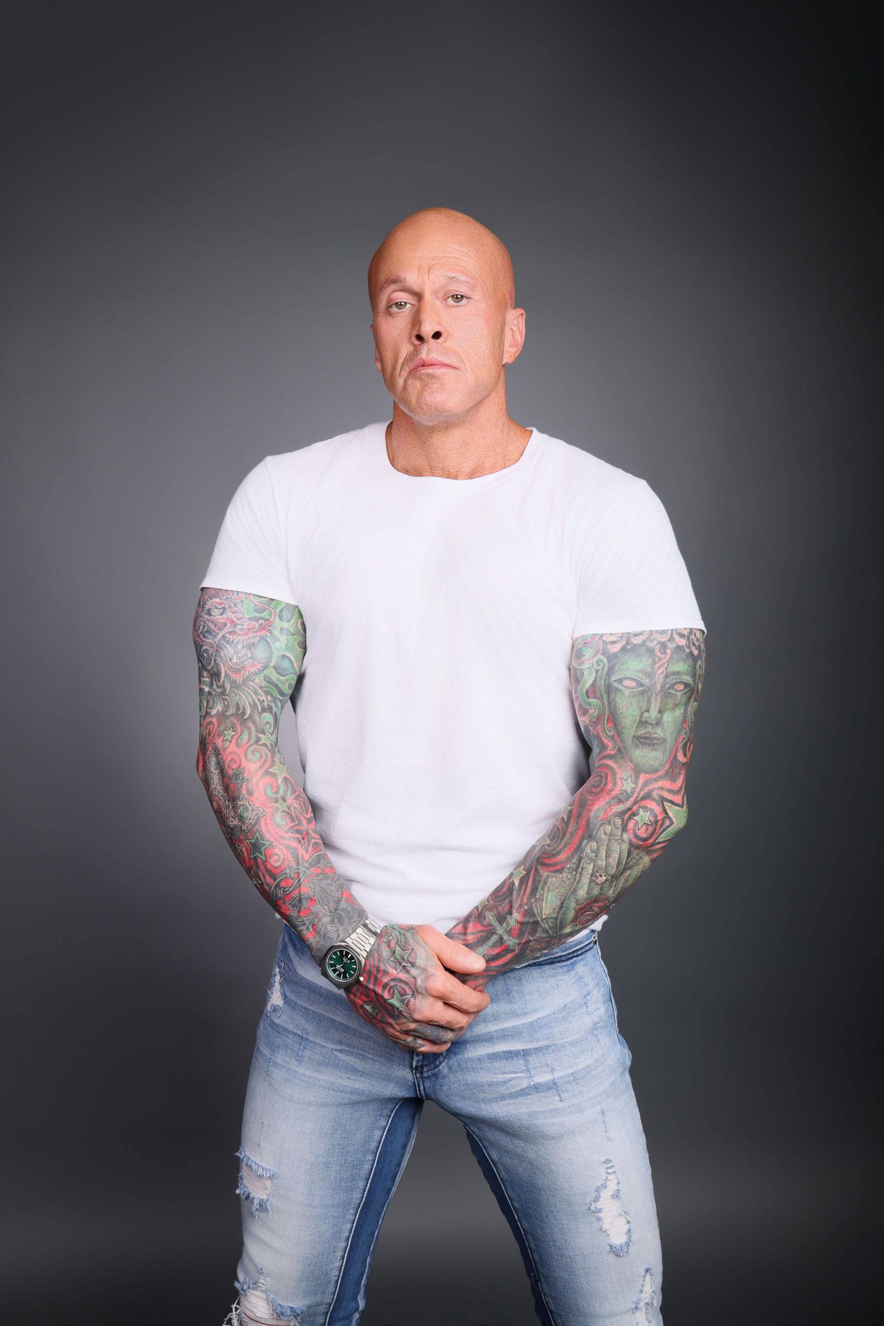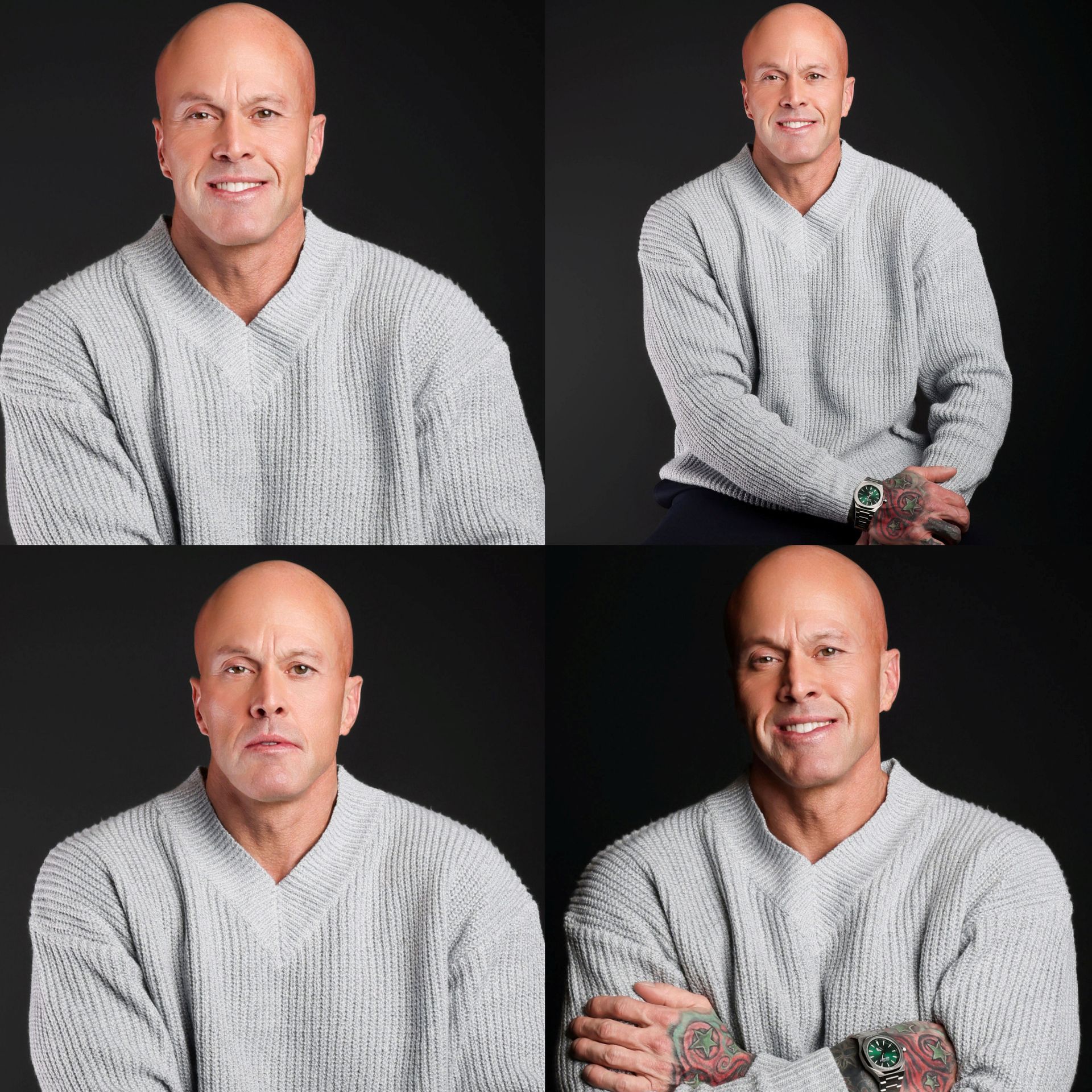 This is 50 years old with Dave “dtune” Langford Photography. The real me, scars, eye ptosis and all. My good friend Matt Janke said, “with age comes wisdom and strength from all the hardships we have endured. The best wines age for decades, wear our scars with pride and the beauty they reveal.” Casual & happy w/ gray sweater. Watch courtesy of Hidden Hills Watch Company. Thank you, Dave, it was an honor.