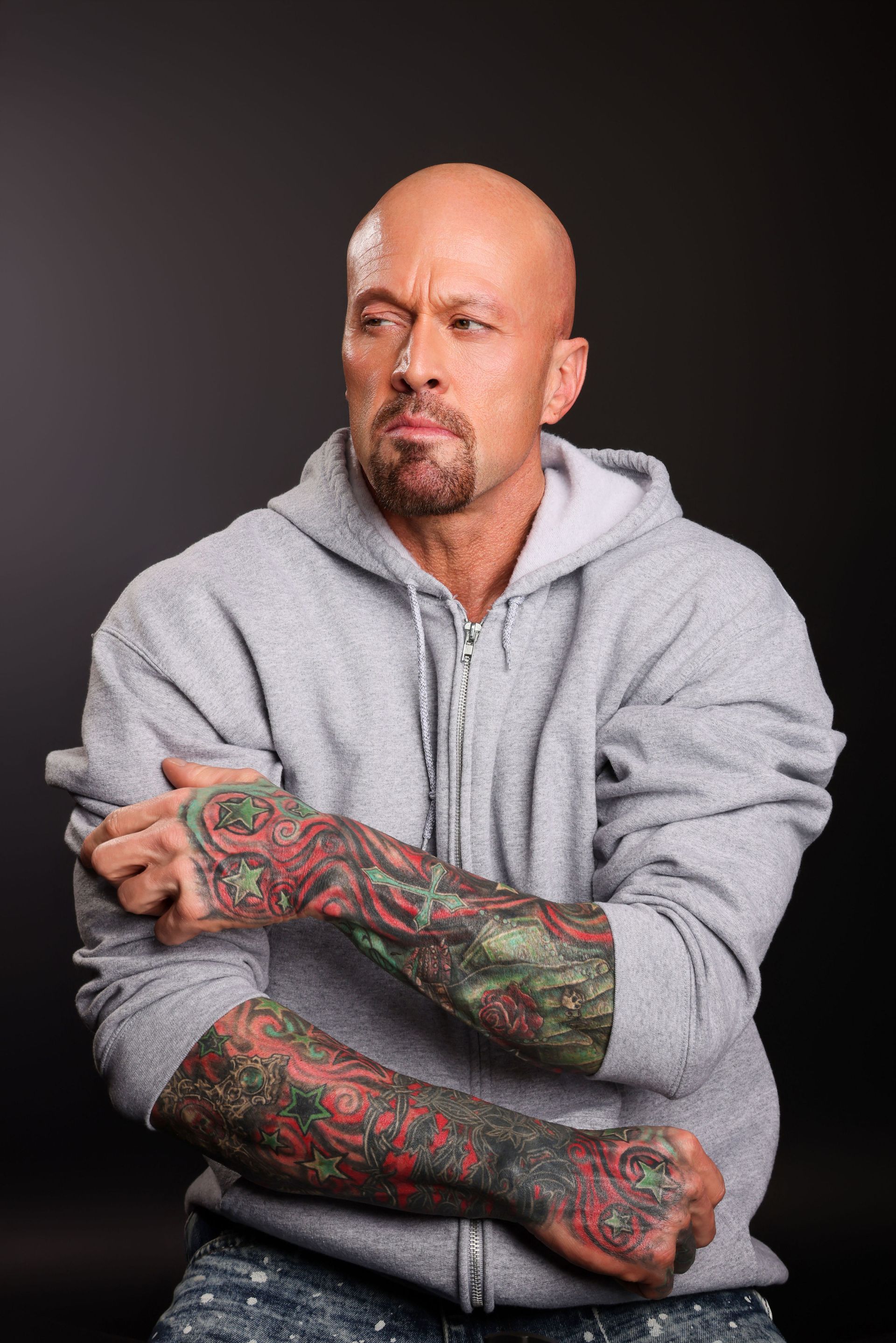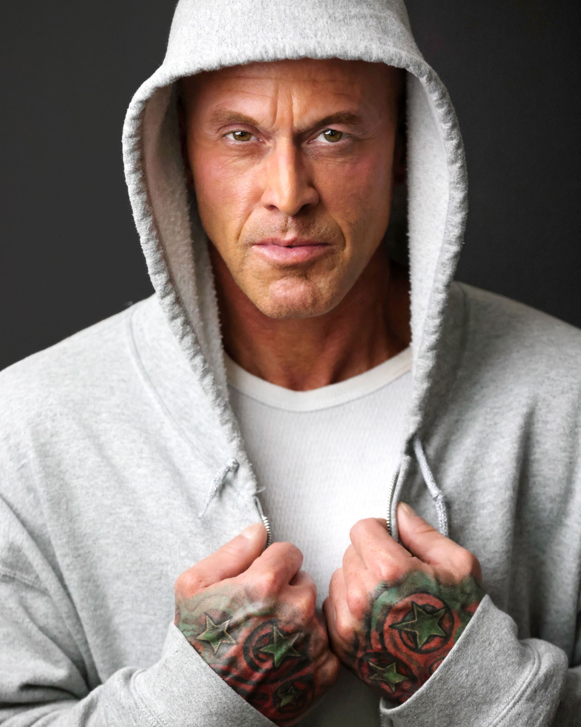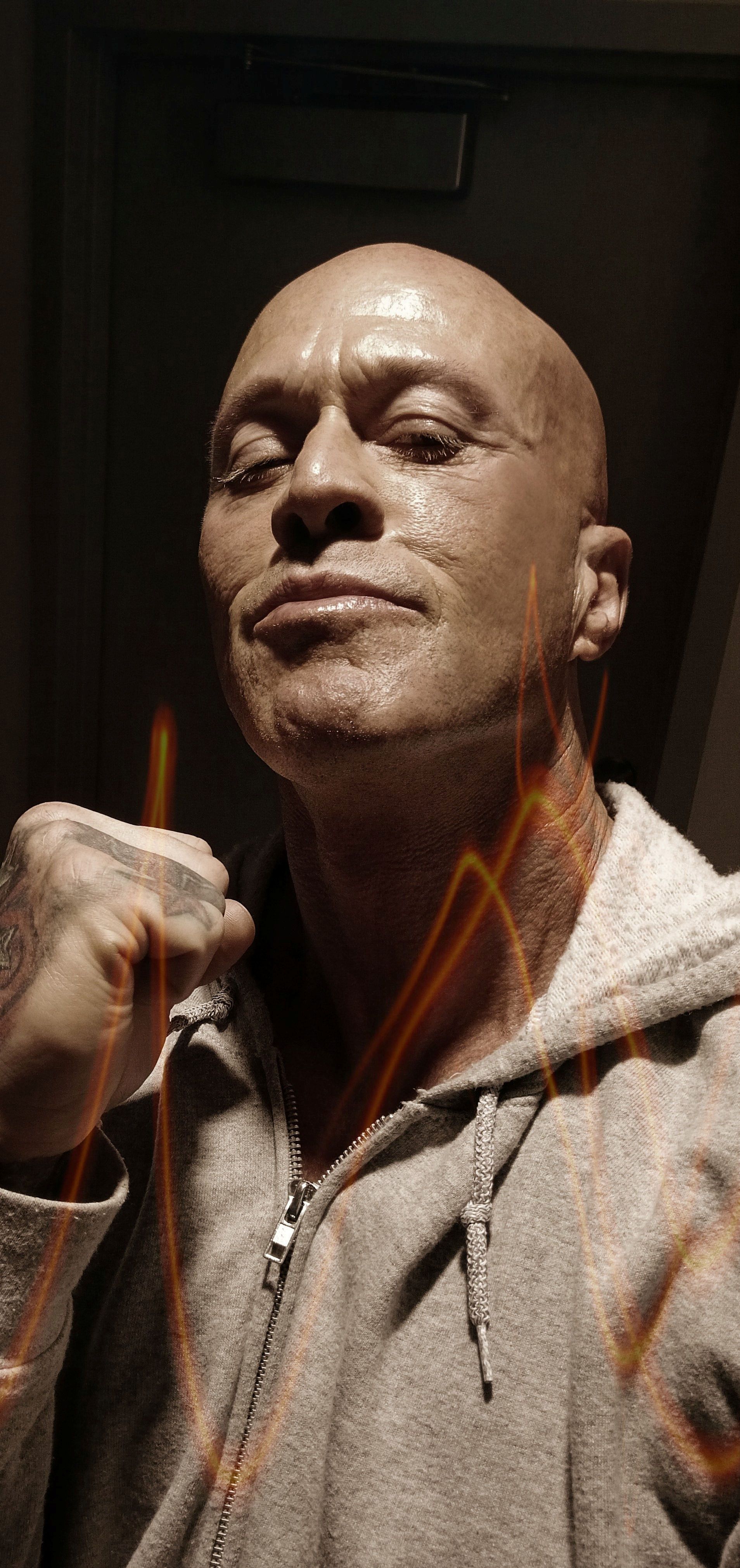 This is 50 years old with Dave “dtune” Langford Photography. The real me, scars, eye ptosis and all. My good friend Matt Janke said, “with age comes wisdom and strength from all the hardships we have endured. The best wines age for decades, wear our scars with pride and the beauty they reveal.” Villainous & bad guy character-based w/ black hoodie. Thank you, Dave, it was an honor.