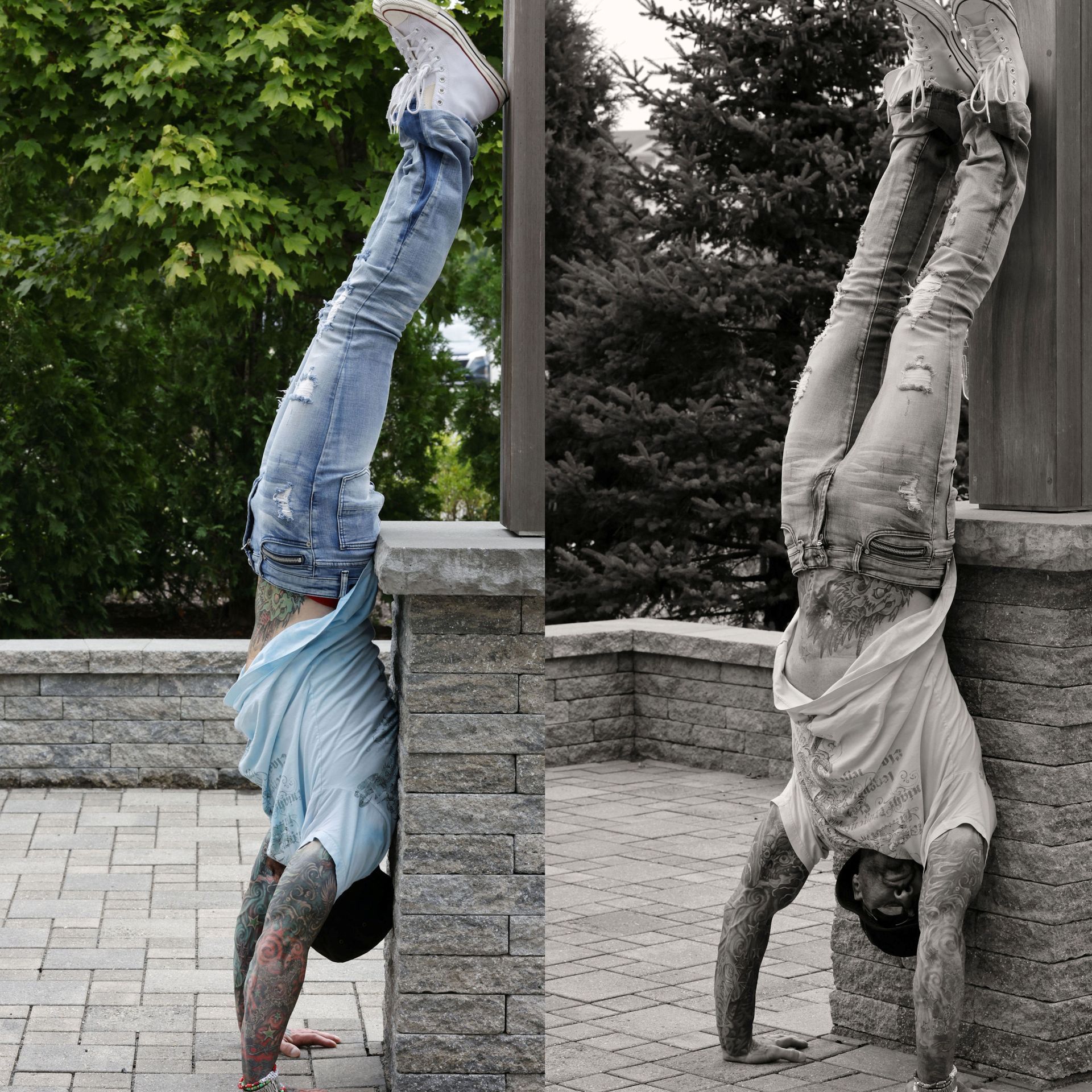 Just standing around on my hands in between shots with photographer Steve Mark.