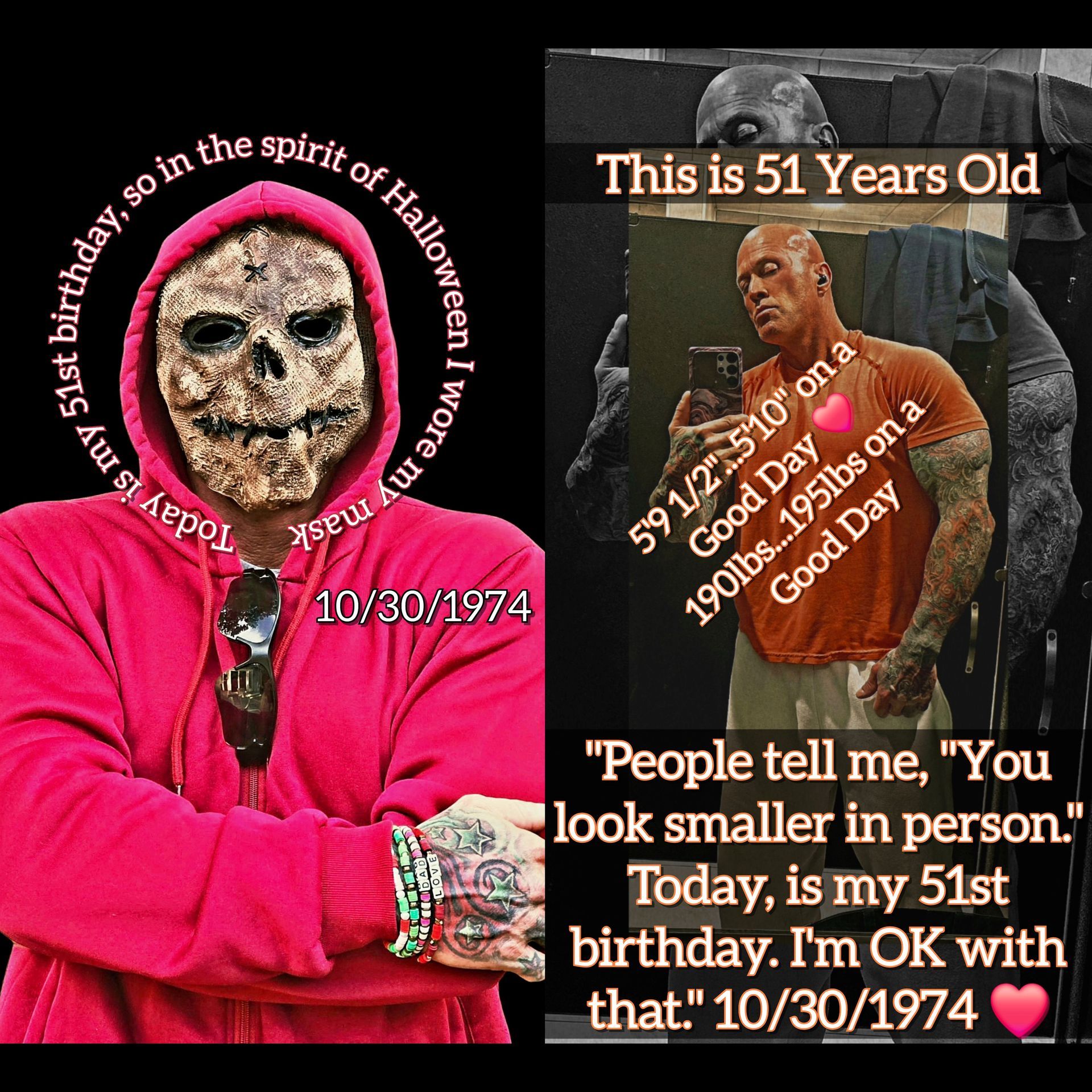 Today is my 50th birthday! October 30th, 1974, my 1st half century has been quite a journey. Too many people to thank for all the love & support. If wealth was measured in memories, I’d be a billionaire. In my younger years I said I’d go until my wheels fell off. In recent years I changed my tune and said 50 would be it. No longer in the fitness industry, no longer in the model industry, and 100% at peace saying so. I’m not that guy anymore and I don’t want to be that guy anymore. I train when I can and focus on my overall health & well-being moving forward. The days of shirtless photos are done, going to leave that for the younger guys now. This is me; this is what 50 looks like. Many chapters of my life are now closed but new ones are opening. I believe in my heart the best is yet to come as inside I’m still that 12-year-old undersized little bag of bones Irish kid who started out with nothing but believed that if he kept working hard some special things in his life could happen. Thanks Babe